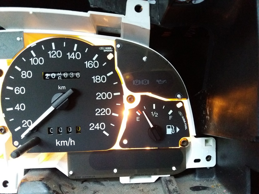 Sai täna proovitud mk1 seeria kellaploki benakella enda mk2 mondeo kellaplokis, sai kellad ära vahetatud, ennem juhmete tahapanekut sai bena kell täesti maha sõrmega keeratud ja siis asi kokki laotud ja juhmed selga plokile. Sai siis süüde sisse pandud ja vaadatud mis teeb näit kellal- tegi seda et bena kella nõel liikus aga väga aeglaselt veidi üle punase ala kellal-kuna ma ei tea palju paagis sees on täpselt siis ma nüüd ei tea kas paagiandur on korras ja näit vastavalt tasemele või liikus see bena nõel mingi massi vms mõjul seal kellaplokis...kui palju ma sellist nõela liikumist nüüd uskuda saan..????! piltidel ka sisi näha kuidas enne benakell maha keeratud ja siis teisel pildil nõela asend peale liikumist-olgu ära mainitud siinkohal, et sellise vahemaa liikumiseks nõelal kulus pea 5min mis pole ka nagu eriti normaalne..kas see võib viidata massi puudusele vms ?